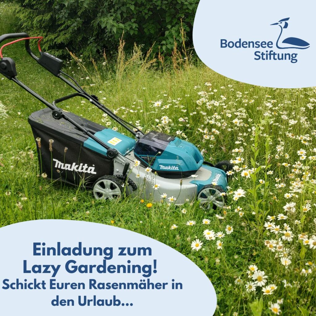 „Lazy Gardening“ lädt alle Radolfzeller*innen sehr niederschwellig dazu ein, Biodiversität vor der eigenen Haustüre zu fördern, indem sie Grünflächen im Mai gar nicht – und später versetzt mähen. Die Bodensee-Stiftung unterstützt die „faulen Gärtner*innen“ von Februar bis in den Herbst mit Informationen und Veranstaltungen, bringt sie z.B. bei gegenseitigen Gartenbesuchen oder einem Sensenkurs miteinander in den Austausch und lädt zu citizen science ein, so dass auch Bürger*innen, die keine eigene Grünfläche haben, Insekten auf öffentlichen Grünflächen per App dokumentieren können.